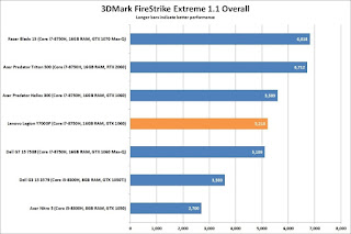 On the Geekbench 4.3 performance test, the Legion Y7000 nailed 22,474, leaving the mainstream gaming laptop average (20,748) and the Helios 300 (20,595) in the dust. However, the TUF FX705 topped both laptops, with 23,179. They all had the same CPU, but the TUF FX705 has double the RAM, at 32GB.